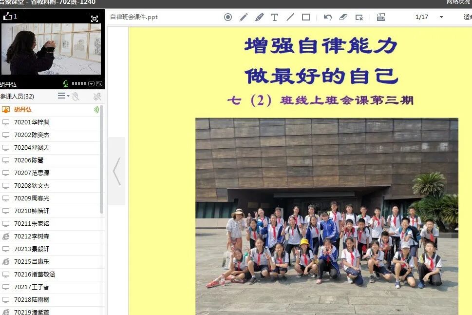 胡丹弘老师,一级教师,江干区二层次骨干班主任,区教坛新秀,市教改之星,毕业于杭州师范大学美术教育专业,2007年8月起参加教育工作。现任省教科院附属实验学校802班班主任兼美术教师、八年级组长。