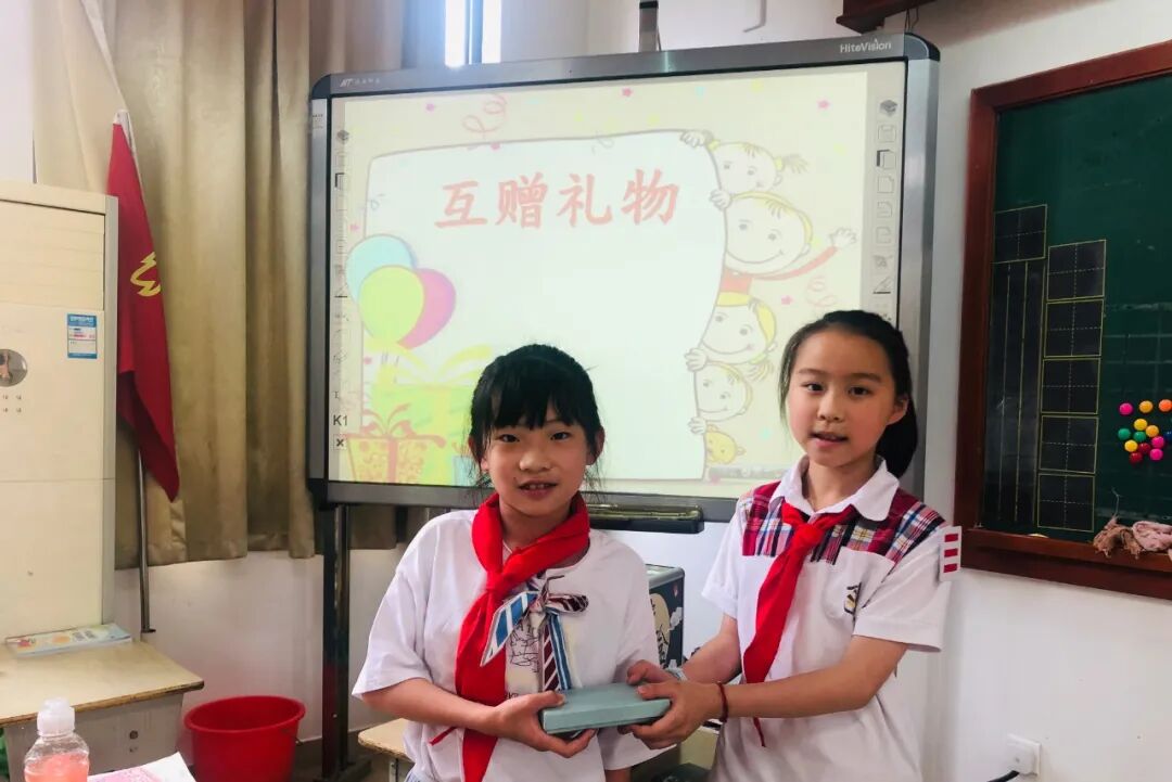 师生民主选出“最有创意”、“最具笑点”、“最具演技”,每人都可领取一张“特制奖券”。每个年级都组织了统一的游戏活动,孩子们在教室里尽展所长,欢声笑语不断。早在一个星期前,每个同学就准备一份用心的惊喜小礼物,可以用自己零花钱购买,但价值不要超过 10 元。抽取学号,将自己的准备的礼物送给指定学号的同学。