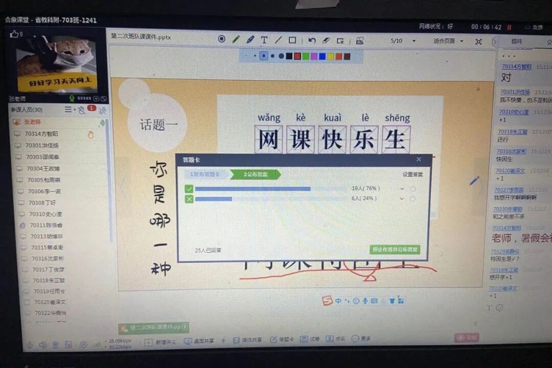 全新的班会形式,让师生们感触颇深虽然不能像平时那样面对面班会,但是同学们热情一点没有减少,屏幕的那端,同学们认真地聆听着,积极地参与着。