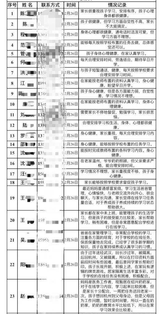 在电话家访过程中,家长们都特别激动,认真倾听老师的要求,并向老师们详细介绍孩子在家的身体、情绪、学习生活情况。家长们对疫情防控工作认识很到位,能积极引导孩子们抗击疫情,同时对学校所做的工作给予了极大的赞赏和肯定。