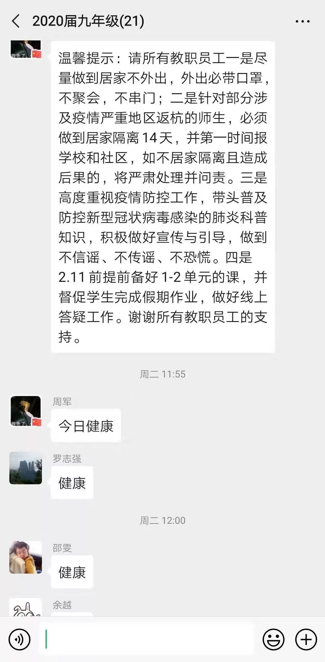 面对突如其来的疫情,学生和家长的心理教育亦至关重要。在党员教师引领下,全校教师人人参与,通过电话、QQ、微信等对学生进行心理疏导,鼓舞着孩子,鼓舞着家长。家校携手,共同努力,一起打胜这场没有硝烟的疫情防控战。