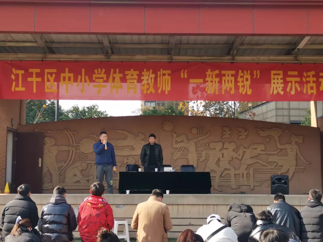 江干区教育发展研究院体育教研员莫豪庆,江干区教育发展研究院特聘体育教研员余萍,以及来自全区各个学校的200多名体育教师参与活动。活动由江干区教育发展研究院特聘体育教研员帅楚荣主持。
