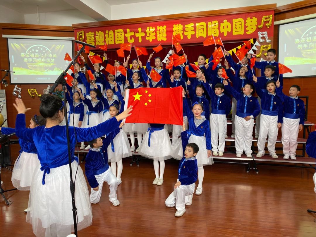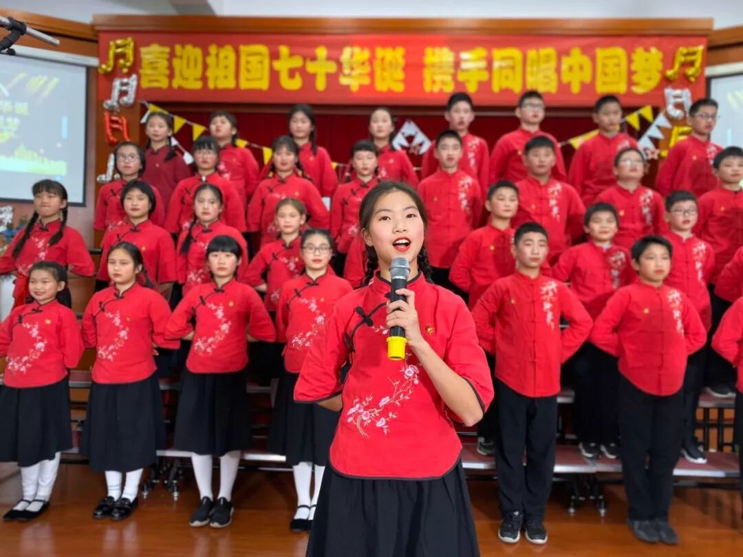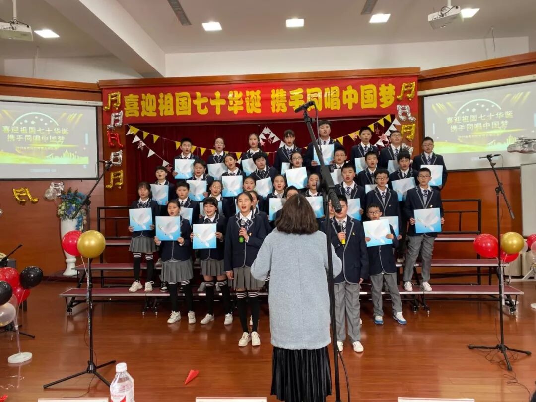 一颗颗红心、一面面国旗、一把把红扇……同学们的歌声时而悠扬婉转如黄莺,时而铿锵如落珠,令人时而感动、时而亢奋。