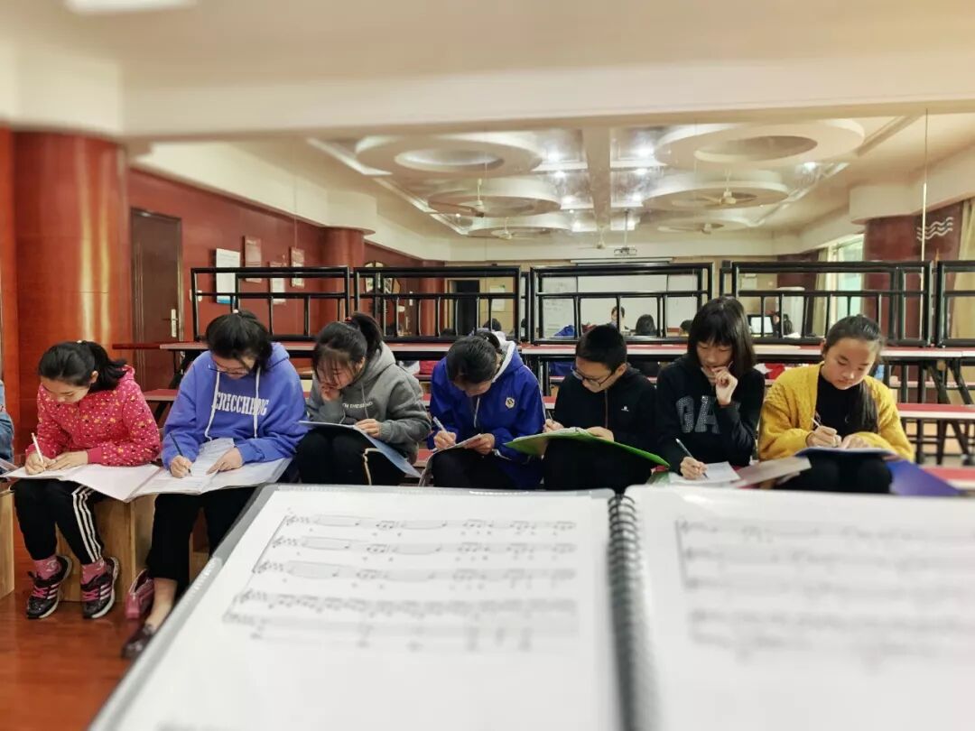 清晨、午间、放学后甚至是周末,音乐教室都曾回荡着他们的歌声。课业繁忙的同时,他们只好利用碎片化时间段进行排练,临近比赛,周末的强化训练最长一次曾达3个小时。