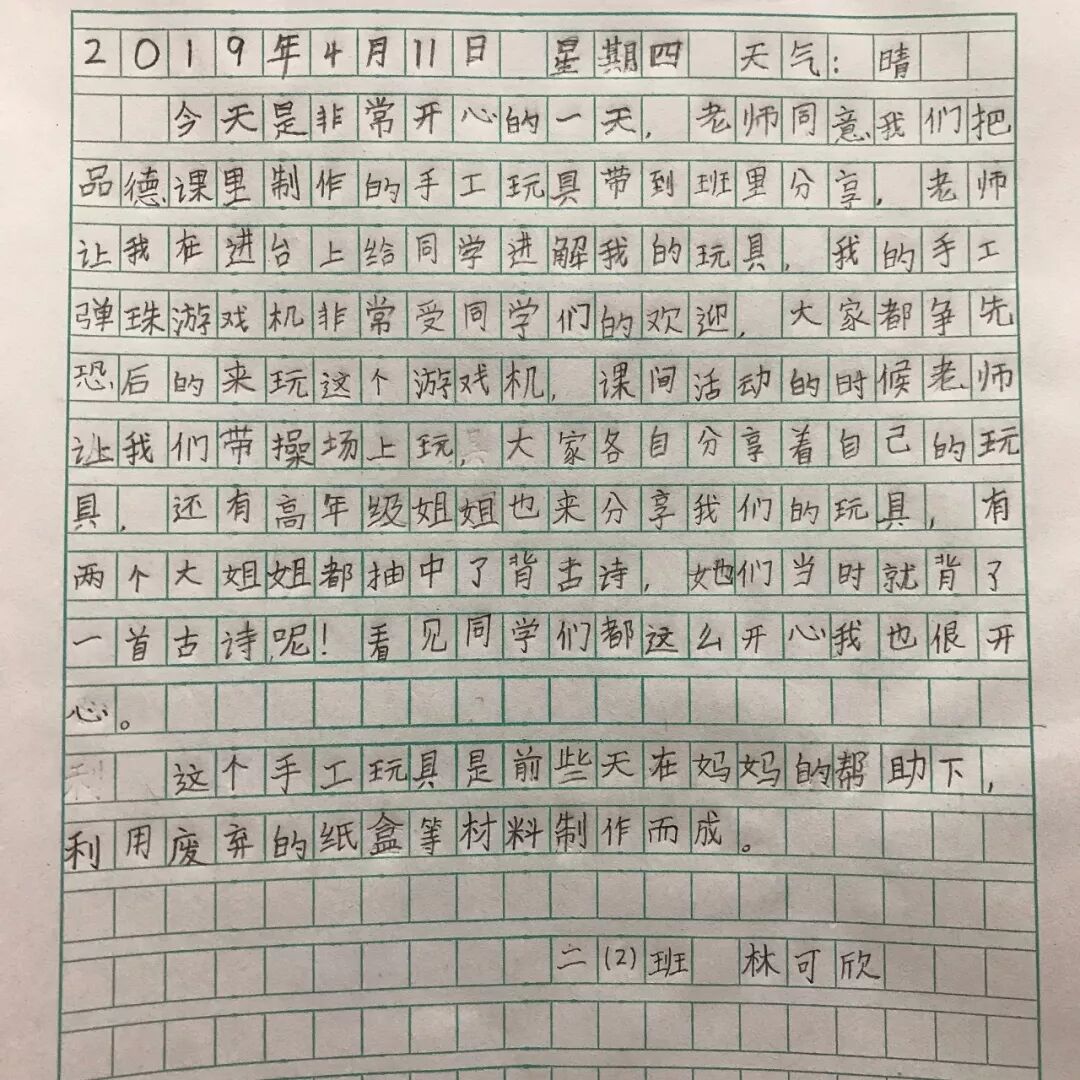 为了记下这次美好的玩具之旅,不少孩子还写下了“玩具日记”,有些孩子分享了做的过程,有些孩子分享了自己玩时的快乐。