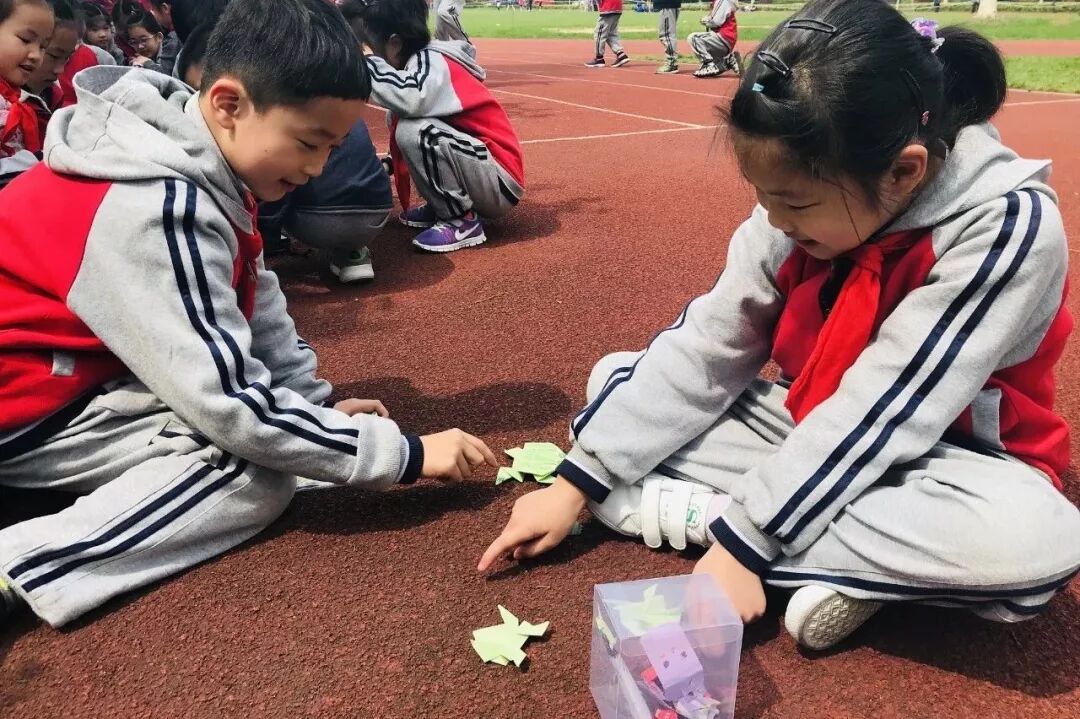 课间,孩子们拿着自己的新玩具和同学分享,他们玩出了自己的花样,玩出了童趣!