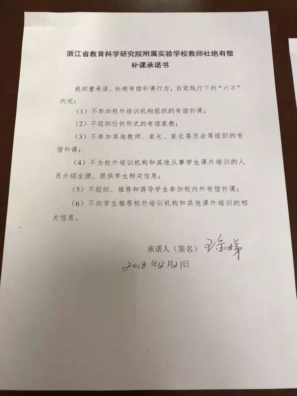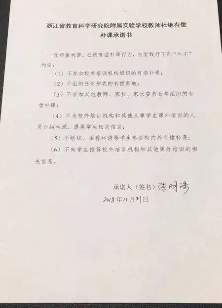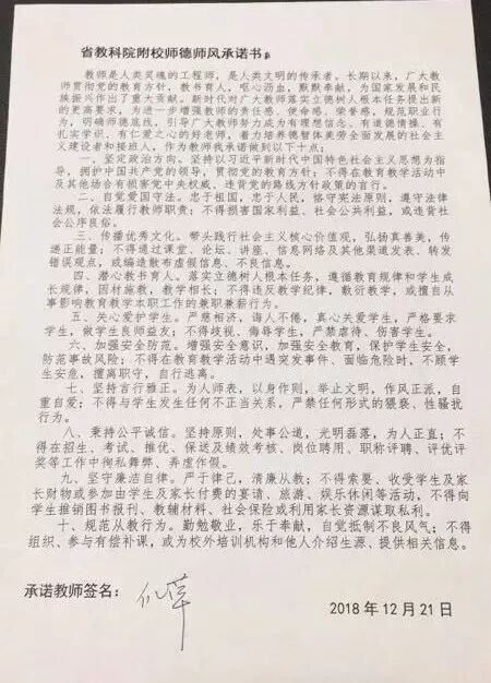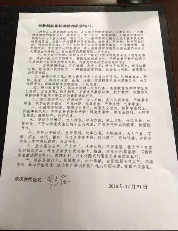 老师们认真学习,并在承诺书上郑重签下自己的名字。