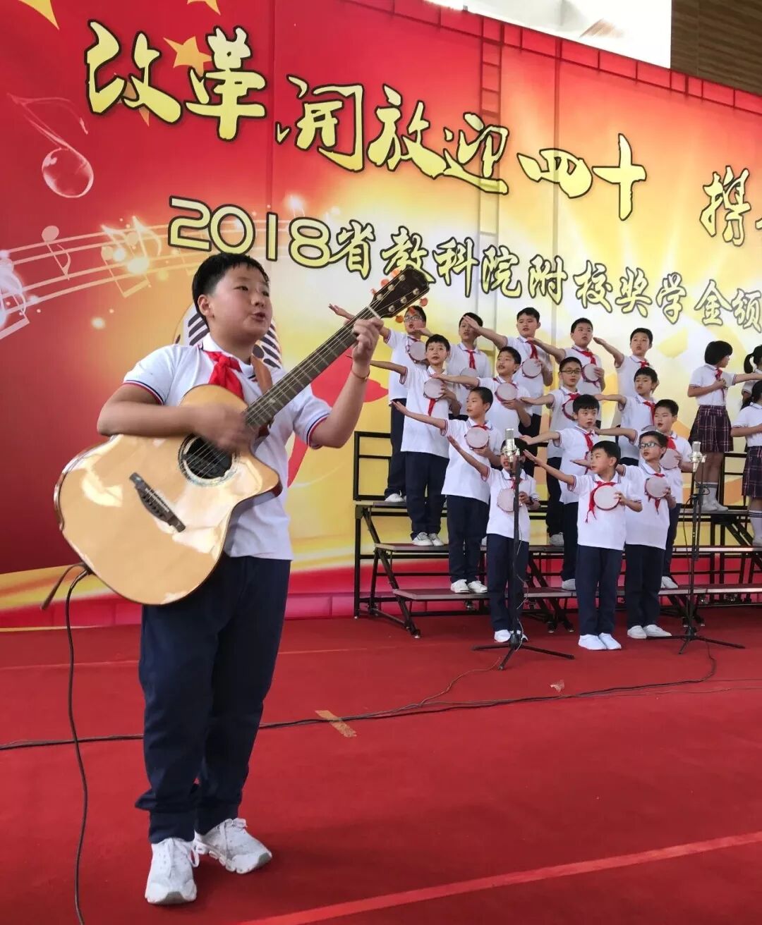 为激发同学们热爱祖国、热爱党的革命情怀,丰富校园文化生活,提高大家的综合文化修养,共建良好的校园文化氛围,给学生提供一个展示班级凝聚力的平台,结合我区艺术教育活动,1123日,省教科附在体艺馆二楼举办以“改革开放迎四十 携手同唱中国梦”为主题的合唱比赛。