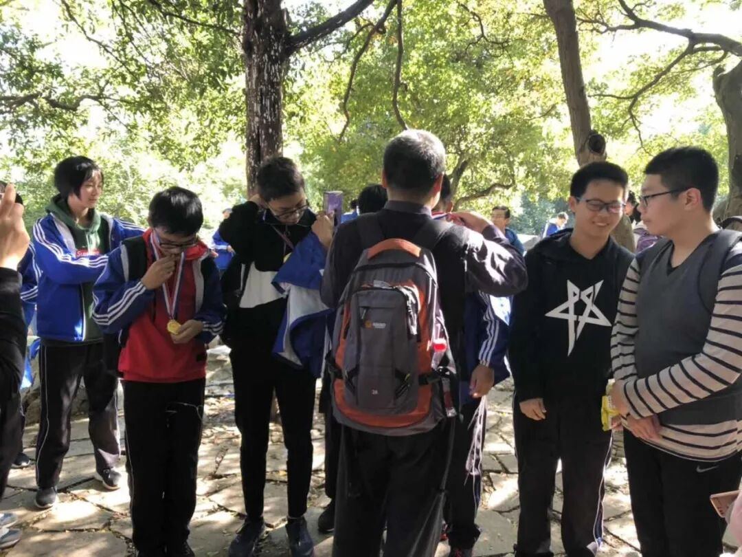 到达目的地后,定向越野pk赛正式开始。找到提示地点的孩子们迫不及待地拍起了认证照片,找到祝福卡片的孩子们视若珍宝地放入自己的口袋。同学们为赢得比赛,团结一致,互帮互助,齐心协力克服困难,充分展示了团体的凝聚力。每一个孩子都满溢青春的笑容。 今天毕业班的同学们登上了玉皇山的顶峰,也祝愿他们在来年的中考中,也可以登上自己梦想的高峰。!