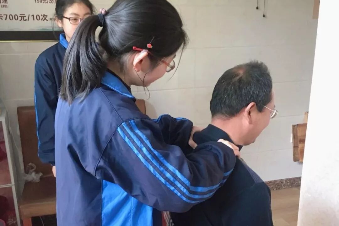 九一班的同学来到了盲人按摩中心,体验他们工作的不易,帮助打扫清洁。