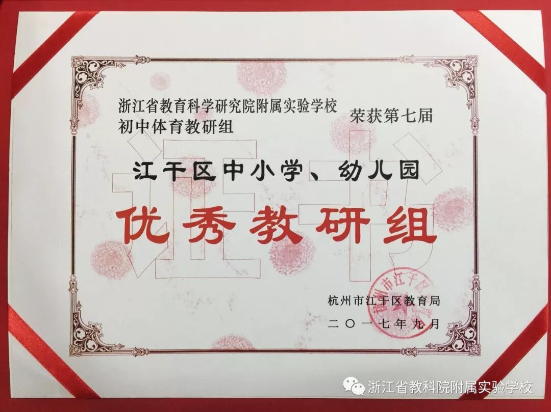 初中体育教研组被评为第七届江干区